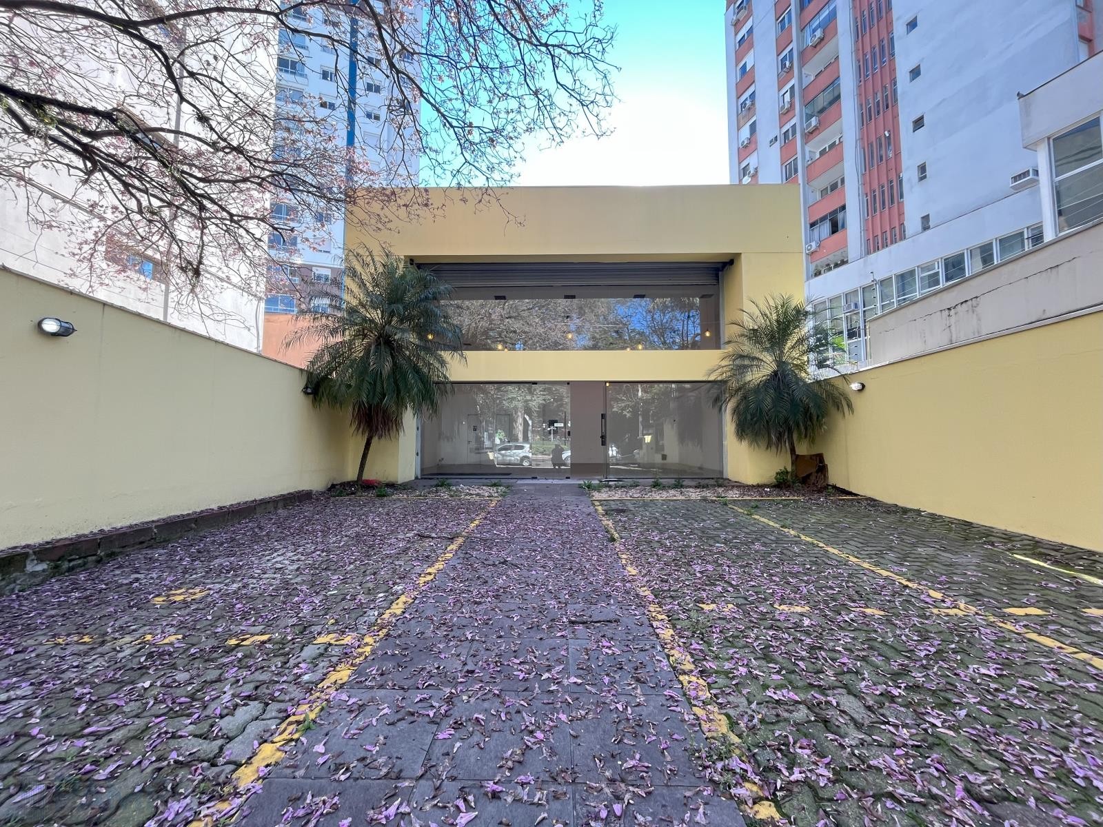 Loja moderna na Rua Quintino Bocaiuva, com 99,43m² de área privativa, vão livre, 2 banheiros e vitrine com cortina metálica automatizada. Fachada contemporânea que valoriza sua marca.