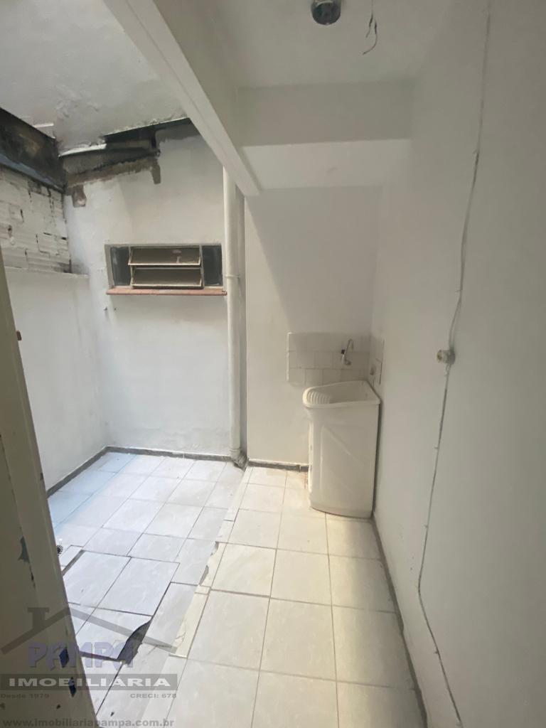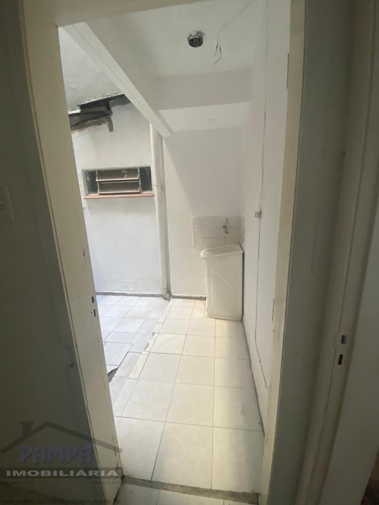 Apartamento térreo de 2 dormitórios, sala, cozinha, área de serviço e banheiro.